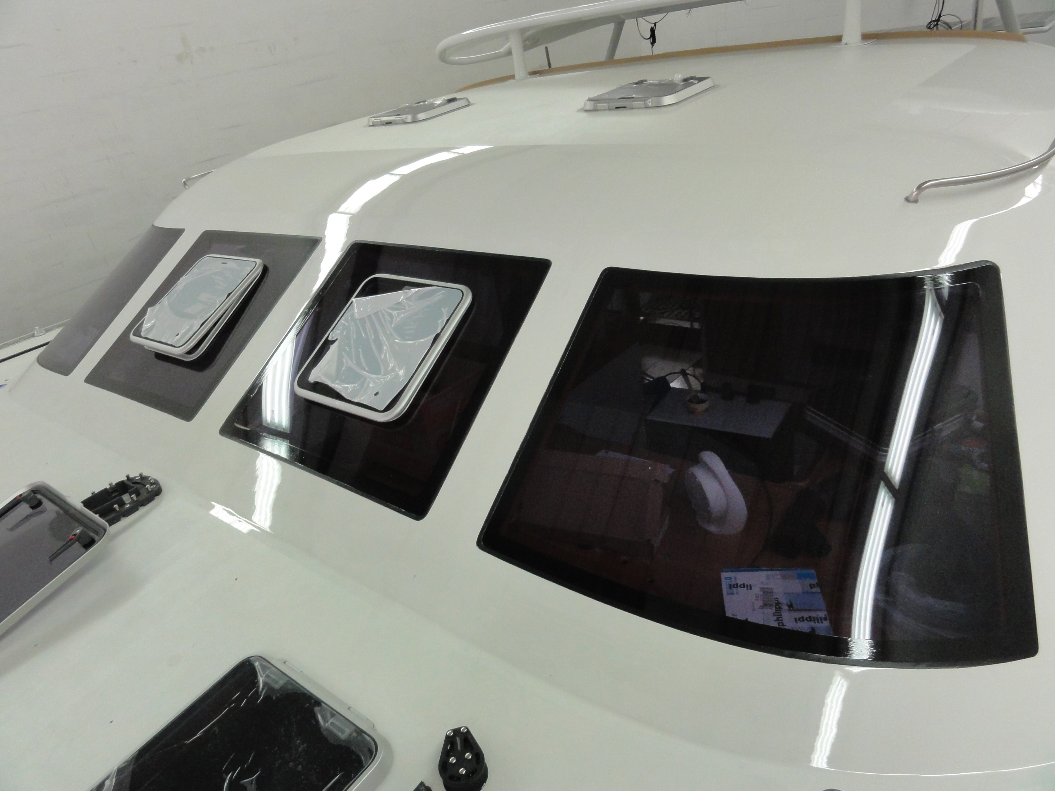 Insgesamt 8 Scheiben, Montage durch Herr Heibeck, www.spezialbootsbau.de